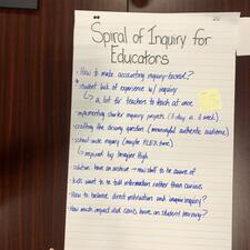 The work of unpacking these two essential questions began in the second meeting: the driving questions were broken down, and focus subcommittees were formed. Teachers and support staff began to assign themselves to roles according to their passions, interests, or burning questions. Among these groups are staff actively exploring topics such as wellness, mental health skills and personal strategies, staff initiatives, and support staff and teacher working relationships. Another group is focused entirely on the data collection, or the "how will we" avenue of this inquiry.